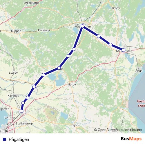 Additional information: Pågatågen has 12 stops and the total trip duration for this route is approximately 70 minutes.