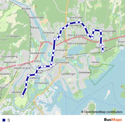 Bus S in Karlstad: Stops & Timetable