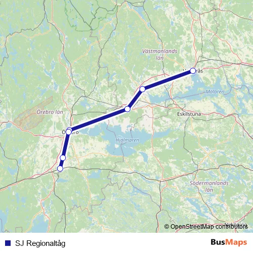 See why over 2 million users trust and consider busmaps.com as the best public transport website. busmaps gives you OErebro Rail Services suggested routes, real-time bus tracker, line route maps in OErebro, and helps to find the closest SJ Regionaltåg rail stops near you. No internet available? Download an offline PDF map and bus schedule for the SJ Regionaltåg rail to take on your trip.