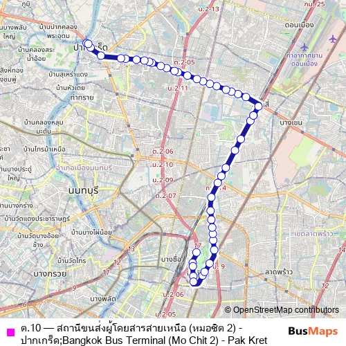 Bus ต.10 - สถานีขนส่งผู้โดยสารสายเหนือ (หมอชิต 2) - ปากเกร็ด;Bangkok Bus Terminal (Mo Chit 2) - Pak Kret in Lak Si: Stops & Timetable