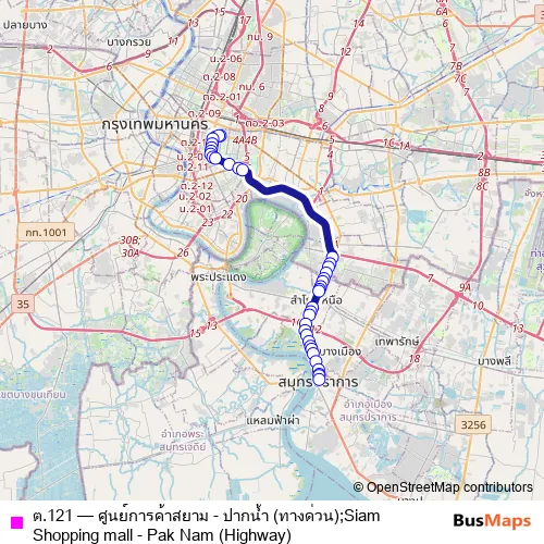 See why over 2 million users trust and consider busmaps.com as the best public transport website. busmaps gives you Samut Prakan Buses suggested routes, real-time bus tracker, line route maps in Samut Prakan, and helps to find the closest ต.121 bus stops near you. No internet available? Download an offline PDF map and bus schedule for the ต.121 bus to take on your trip.