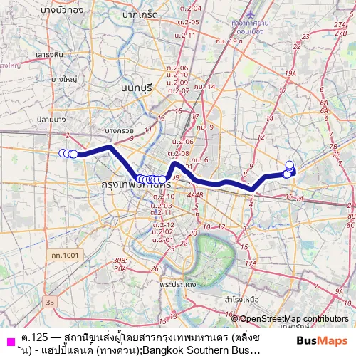 See why over 2 million users trust and consider busmaps.com as the best public transport website. busmaps gives you Bangkok Buses suggested routes, real-time bus tracker, line route maps in Bangkok, and helps to find the closest ต.125 bus stops near you. No internet available? Download an offline PDF map and bus schedule for the ต.125 bus to take on your trip.