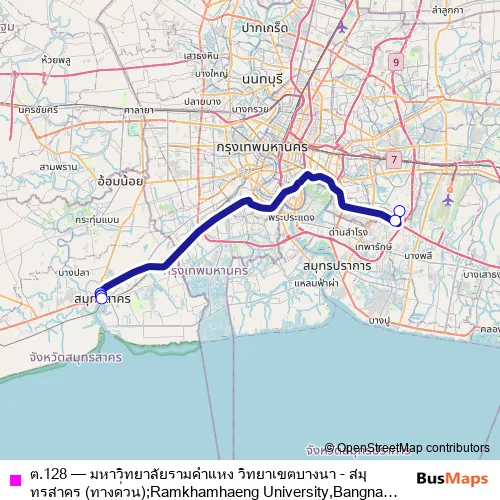 Click here to view the nearest ต.128 - มหาวิทยาลัยรามคำแหง วิทยาเขตบางนา - สมุทรสาคร (ทางด่วน);Ramkhamhaeng University,Bangna Campus - Samutsakhon(Highway) bus stop.