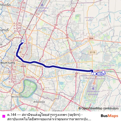 See why over 2 million users trust and consider busmaps.com as the best public transport website. busmaps gives you Lat Krabang Buses suggested routes, real-time bus tracker, line route maps in Lat Krabang, and helps to find the closest ต.144 bus stops near you. No internet available? Download an offline PDF map and bus schedule for the ต.144 bus to take on your trip.