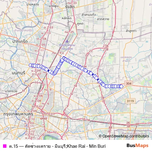 See why over 2 million users trust and consider busmaps.com as the best public transport website. busmaps gives you Bang Khen Buses suggested routes, real-time bus tracker, line route maps in Bang Khen, and helps to find the closest ต.15 bus stops near you. No internet available? Download an offline PDF map and bus schedule for the ต.15 bus to take on your trip.
