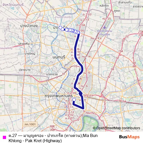 Click here to view the nearest ต.27 - มาบุญครอง - ปากเกร็ด (ทางด่วน);Ma Bun Khlong - Pak Kret (Highway) bus stop.