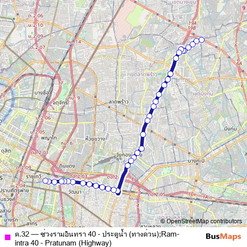 Bus ต.32 - ช่วงรามอินทรา 40 - ประตูน้ำ (ทางด่วน);Ram-intra 40 - Pratunam (Highway): Full Schedule in Watthana