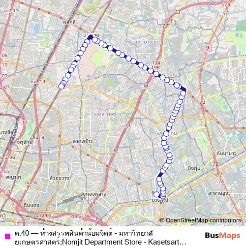Click here to view the nearest ต.40 - ห้างสรรพสินค้าน้อมจิตต์ - มหาวิทยาลัยเกษตรศาสตร์;Nomjit Department Store - Kasetsart University bus stop.