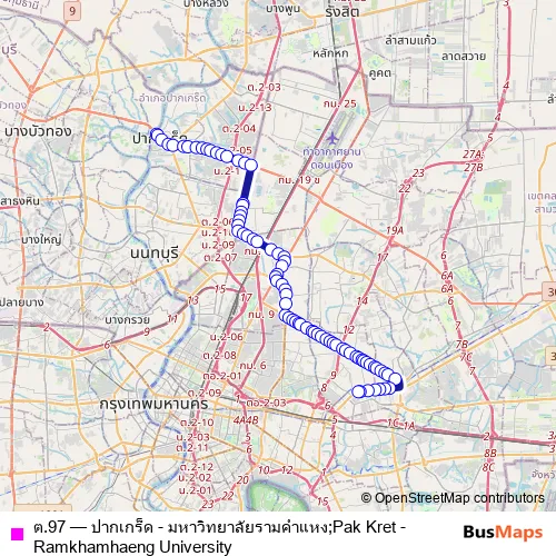 Bus ต.97 - ปากเกร็ด - มหาวิทยาลัยรามคำแหง;Pak Kret - Ramkhamhaeng University in Chatuchak: Stops & Timetable