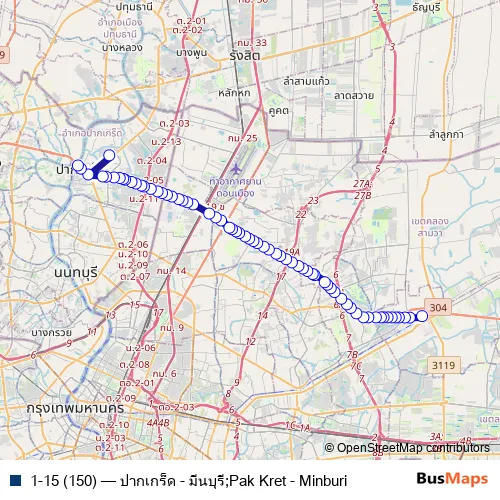 Click here to view the nearest 1-15 (150) - ปากเกร็ด - มีนบุรี;Pak Kret - Minburi bus stop.