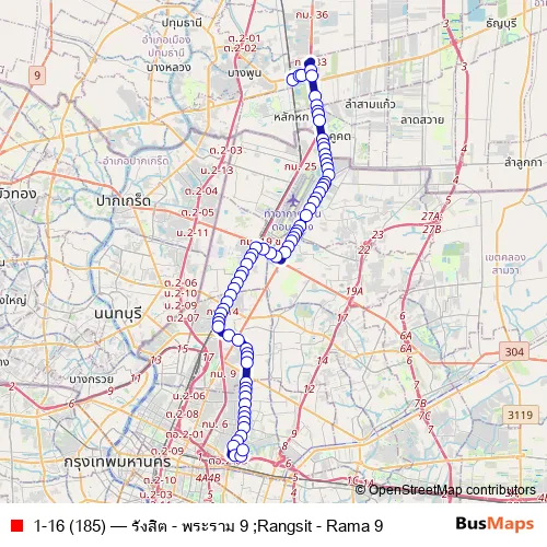 Bus 1-16 (185) - รังสิต - พระราม 9 ;Rangsit - Rama 9: Full Schedule in Sai Mai