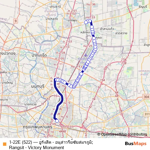 อู่รังสิต;Bus Depot Rangsit. 1-22E (522) (อู่รังสิต - อนุสาวรีย์ชัยสมรภูมิ;Rangsit - Victory Monument) is operational during ทุกวัน.