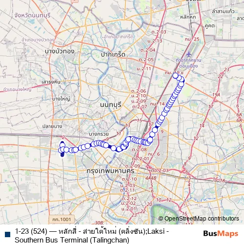 Bus 1-23 (524) - หลักสี่ - สายใต้ใหม่ (ตลิ่งชัน);Laksi - Southern Bus Terminal (Talingchan) Schedule in Chatuchak