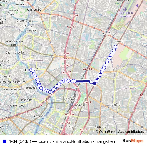 Additional information: 1-34 (543ก) has 44 stops and the total trip duration for this route is approximately 65 minutes.