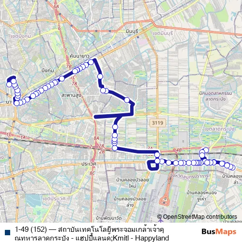 1-49 (152) Bus - สถาบันเทคโนโลยีพระจอมเกล้าเจ้าคุณทหารลาดกระบัง - แฮปปี้แลนด์;Kmitl - Happyland