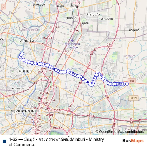 Bus 1-62 - มีนบุรี - กระทรวงพาณิชย์;Minburi - Ministry of Commerce in Khan Na Yao: Stops & Timetable