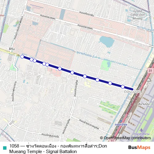 Click here to view the nearest 1058 - ช่วงวัดดอนเมือง - กองพันทหารสื่อสาร;Don Mueang Temple - Signal Battalion bus stop.