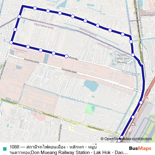 Click here to view the nearest 1088 - สถานีรถไฟดอนเมือง - หลักหก - หมู่บ้านดาวทอง;Don Mueang Railway Station - Lak Hok - Dao Thong Village bus stop.