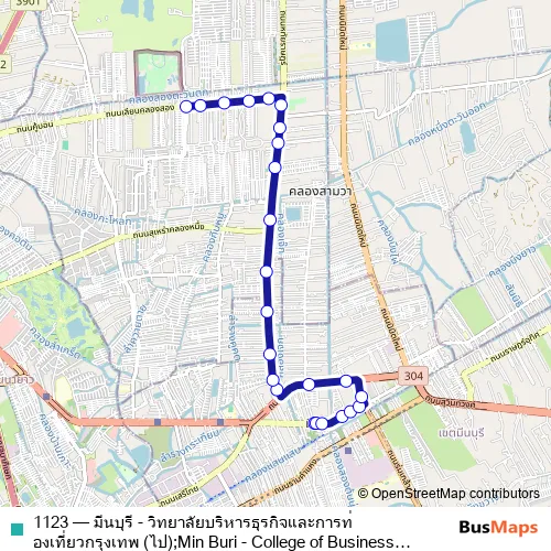 Bus 1123 - มีนบุรี - วิทยาลัยบริหารธุรกิจและการท่องเที่ยวกรุงเทพ (ไป);Min Buri - College of Business Administration and Tourism: Full Schedule in Min Buri