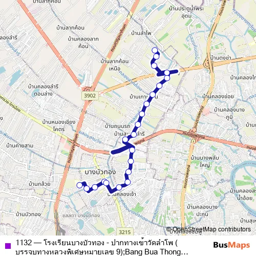 Bus 1132 - โรงเรียนบางบัวทอง - ปากทางเข้าวัดลำโพ (บรรจบทางหลวงพิเศษหมายเลข 9);Bang Bua Thong School - Lam Po Temple in Pak Kret: Stops & Timetable