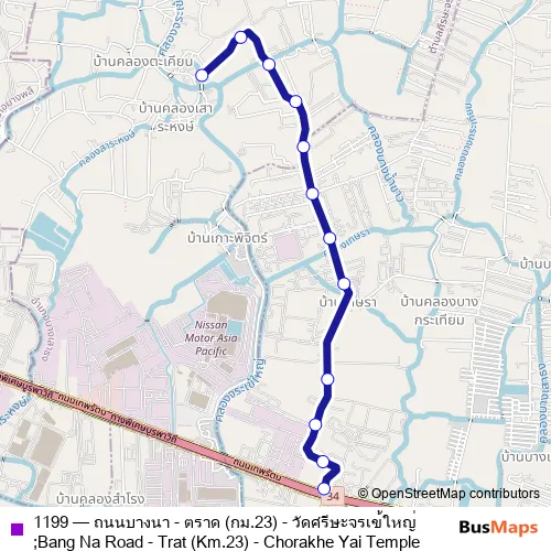 1199 Bus - ถนนบางนา - ตราด (กม.23) - วัดศรีษะจรเข้ใหญ่;Bang Na Road - Trat (Km.23) - Chorakhe Yai Temple