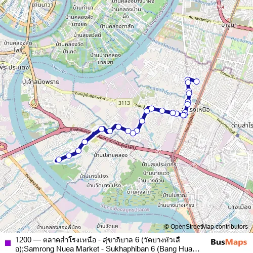 Click here to view the nearest 1200 - ตลาดสำโรงเหนือ - สุขาภิบาล 6 (วัดบางหัวเสือ);Samrong Nuea Market - Sukhaphiban 6 (Bang Hua Suea Temple) bus stop.