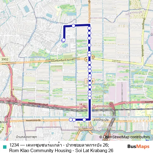 Bus 1234 - เคหะชุมชนร่มเกล้า - ปากซอยลาดกระบัง 26;Rom Klao Community Housing - Soi Lat Krabang 26: Full Schedule in Lat Krabang