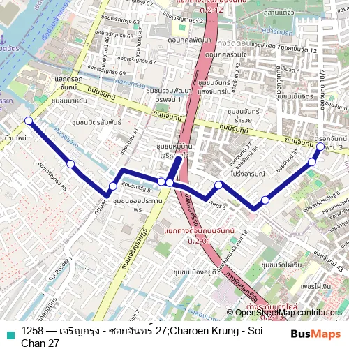 Click here to view the nearest 1258 - เจริญกรุง - ซอยจันทร์ 27;Charoen Krung - Soi Chan 27 bus stop.