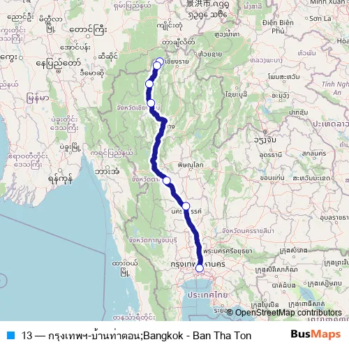 ขาไป: จุดจอดบ้านท่าตอน (ตลาดมีสุข);Ban Tha Ton Stop (Mee Suk Market) – สถานีขนส่งหมอชิต 2 (ชานชาลาขาเข้า);Mo Chit 2 Bus Terminal (arrival platform)