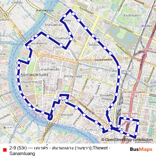 Bus 2-9 (53r) - เทเวศร์ - สนามหลวง (วนขวา);Thewet - Sanamluang: Full Schedule in Bangkok