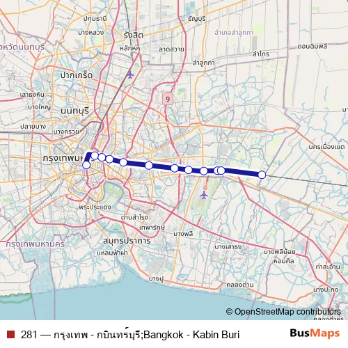 Click here to view the nearest 281 - กรุงเทพ - กบินทร์บุรี;Bangkok - Kabin Buri rail stop.
