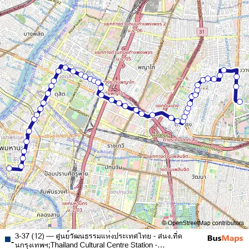 See why over 2 million users trust and consider busmaps.com as the best public transport website. busmaps gives you Bangkok Buses suggested routes, real-time bus tracker, line route maps in Bangkok, and helps to find the closest 3-37 (12) bus stops near you. No internet available? Download an offline PDF map and bus schedule for the 3-37 (12) bus to take on your trip.