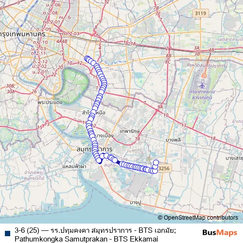 See why over 2 million users trust and consider busmaps.com as the best public transport website. busmaps gives you Samut Prakan Buses suggested routes, real-time bus tracker, line route maps in Samut Prakan, and helps to find the closest 3-6 (25) bus stops near you. No internet available? Download an offline PDF map and bus schedule for the 3-6 (25) bus to take on your trip.