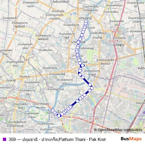 See why over 2 million users trust and consider busmaps.com as the best public transport website. busmaps gives you Pathum Thani Buses suggested routes, real-time bus tracker, line route maps in Pathum Thani, and helps to find the closest 359 bus stops near you. No internet available? Download an offline PDF map and bus schedule for the 359 bus to take on your trip.