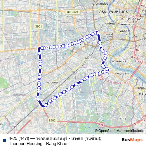Bus 4-25 (147l) - วงกลมเคหะธนบุรี - บางแค (วนซ้าย);Thonburi Housing - Bang Khae: Full Schedule in Phasi Charoen