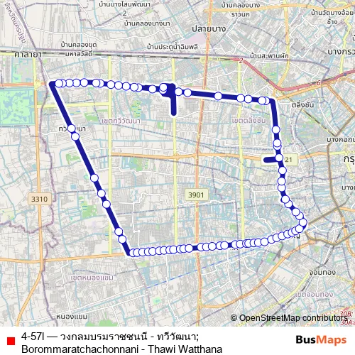 The first stop of the 4-57l bus route is อู่บรมราชชนนี;Borommaratchachonnani Bus Depot and the last stop is อู่บรมราชชนนี (จุดสิ้นสุด);Borommaratchachonnani Bus Depot. 4-57l (วงกลมบรมราชชนนี - ทวีวัฒนา;Borommaratchachonnani - Thawi Watthana) is operational during ทุกวัน.