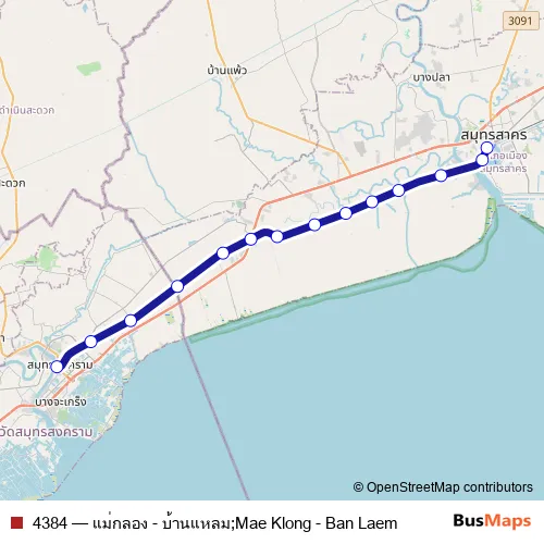 Click here to view the nearest 4384 - แม่กลอง - บ้านแหลม;Mae Klong - Ban Laem rail stop.