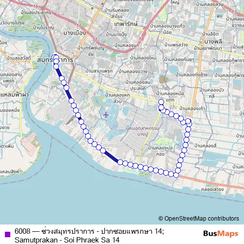 See why over 2 million users trust and consider busmaps.com as the best public transport website. busmaps gives you Samut Prakan Buses suggested routes, real-time bus tracker, line route maps in Samut Prakan, and helps to find the closest 6008 bus stops near you. No internet available? Download an offline PDF map and bus schedule for the 6008 bus to take on your trip.