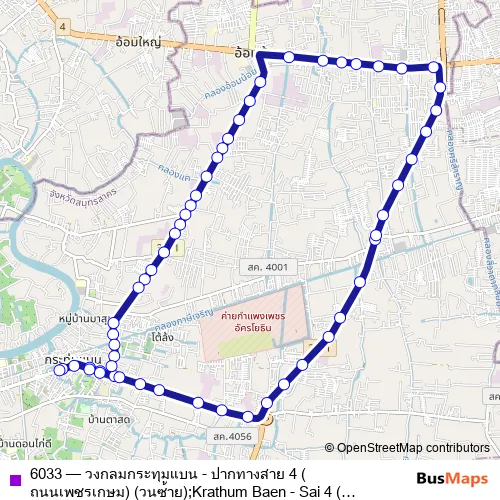Bus 6033 - วงกลมกระทุมแบน - ปากทางสาย 4 (ถนนเพชรเกษม) (วนซ้าย);Krathum Baen - Sai 4 (Phetkasem Road) in Krathum Baen: Stops & Timetable