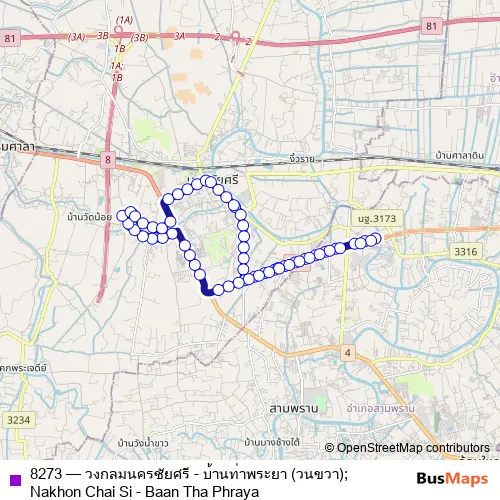 Bus 8273 - วงกลมนครชัยศรี - บ้านท่าพระยา (วนขวา);Nakhon Chai Si - Baan Tha Phraya: Full Schedule in Nakhon Chai Si