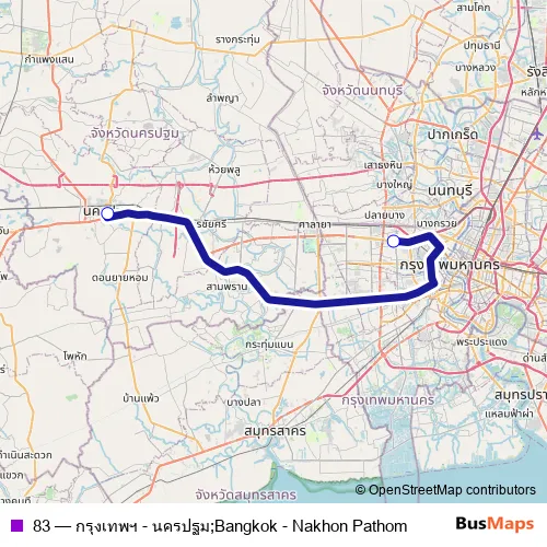 See why over 2 million users trust and consider busmaps.com as the best public transport website. busmaps gives you Nakhon Pathom Buses suggested routes, real-time bus tracker, line route maps in Nakhon Pathom, and helps to find the closest 83 bus stops near you. No internet available? Download an offline PDF map and bus schedule for the 83 bus to take on your trip.