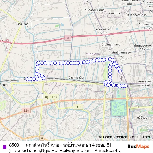 Click here to view the nearest 8500 - สถานีรถไฟงิ้วราย - หมู่บ้านพฤกษา 4 (ซอย 51) - ตลาดศาลายา;Ngiu Rai Railway Station - Phrueksa 4 Village (Soi 51) - Salaya Market bus stop.