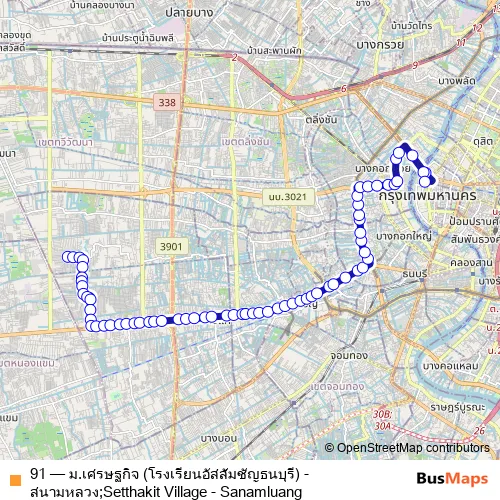 ท่ารถหมู่บ้านเศรษฐกิจ (สาย 91);Muban Setthakit Bus Terminal (Line 91) – สนามหลวง (ตรงข้ามม.ธรรมศาสตร์);Sanamluang (Opposite Thammasart U.)