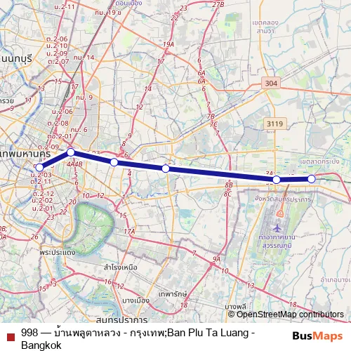 See why over 2 million users trust and consider busmaps.com as the best public transport website. busmaps gives you Lat Krabang Rail Services suggested routes, real-time bus tracker, line route maps in Lat Krabang, and helps to find the closest 998 rail stops near you. No internet available? Download an offline PDF map and bus schedule for the 998 rail to take on your trip.
