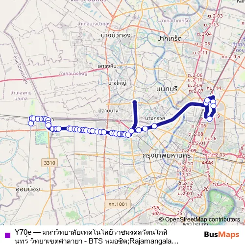 Bus Y70e - มหาวิทยาลัยเทคโนโลยีราชมงคลรัตนโกสินทร์ วิทยาเขตศาลายา - BTS หมอชิต;Rajamangala University of Technology Rattanakosin,Salaya Campus - Mo Chit BTS Station: Full Schedule in Salaya