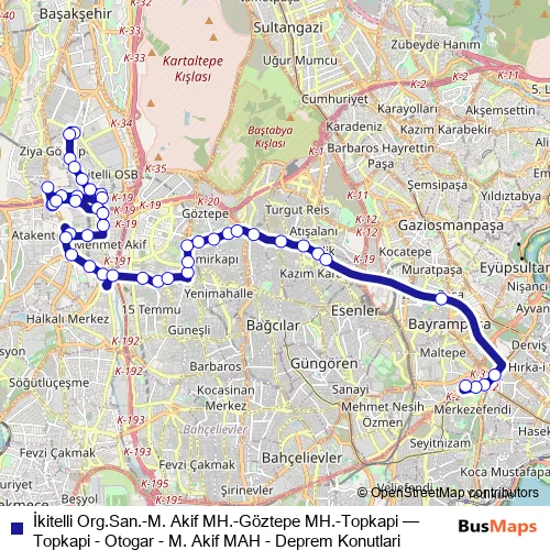 İkitelli Org.San.-M. Akif MH.-Göztepe MH.-Topkapi bus Route Map