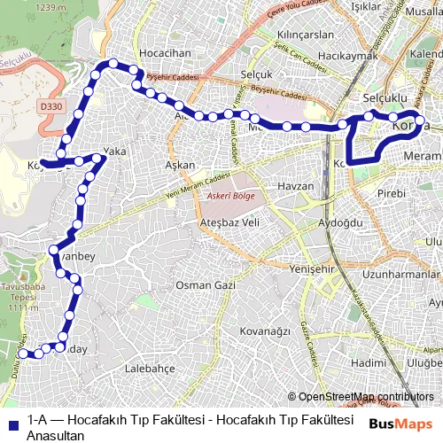 See why over 2 million users trust and consider busmaps.com as the best public transport website. busmaps gives you Konya Buses suggested routes, real-time bus tracker, line route maps in Konya, and helps to find the closest 1-A bus stops near you. No internet available? Download an offline PDF map and bus schedule for the 1-A bus to take on your trip.
