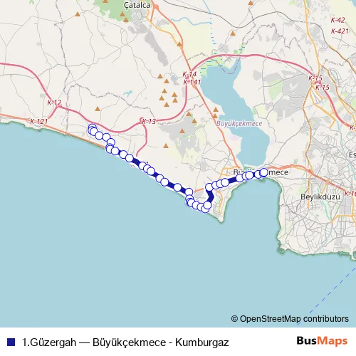 Click here to view the nearest 1.Güzergah - Büyükçekmece - Kumburgaz bus stop.