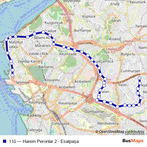 Click here to view the nearest 11ü - Harem Peronlar 2 - Esatpaşa bus stop.