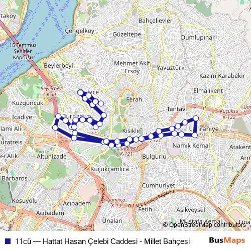 See why over 2 million users trust and consider busmaps.com as the best public transport website. busmaps gives you UEmraniye Buses suggested routes, real-time bus tracker, line route maps in UEmraniye, and helps to find the closest 11cü bus stops near you. No internet available? Download an offline PDF map and bus schedule for the 11cü bus to take on your trip.